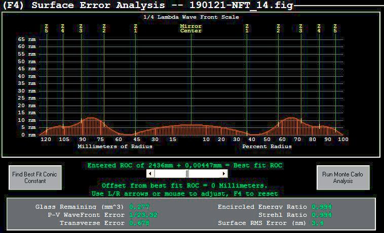 22 January 2019 at 9:20 #11300Sincere congratulations, an excellent job! If you can make a rough look of the entire surface we can also evaluate the quality’ riduardo rugosita’ and general state of the surface, thus being able to exclude’ also any problems not visible to Foucault such as local errors and also understand the entity’ of the possible clinched edge.